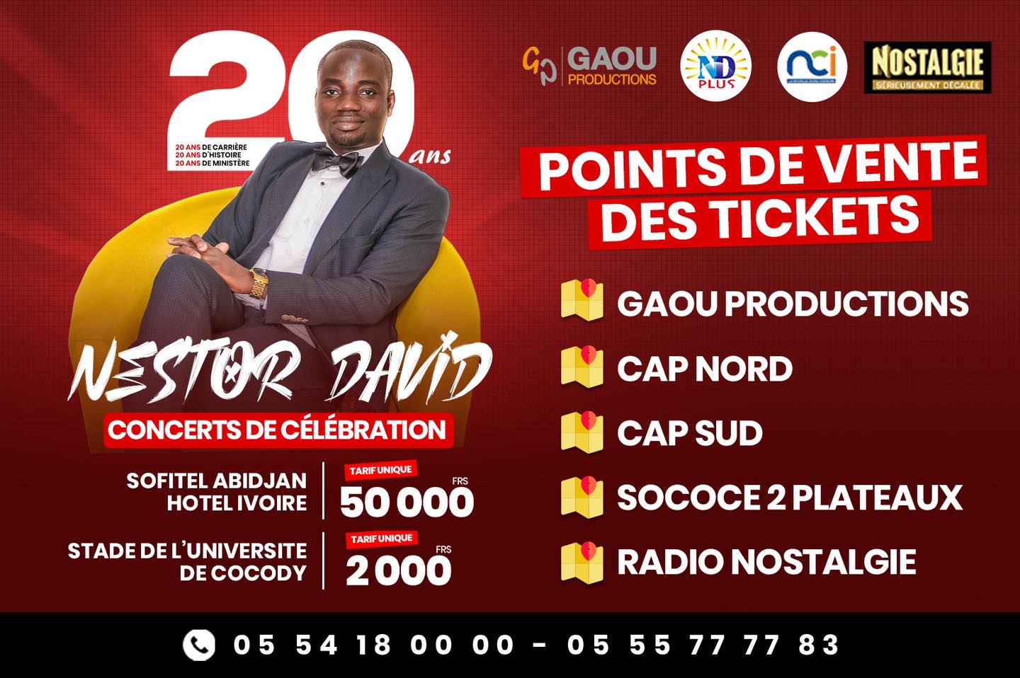 Les tickets de célébration des 20 ans de carrière de Nestor David sont disponibles !